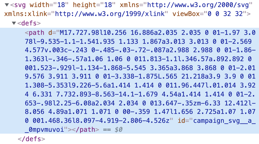 element 탭을 눈여겨보던 와중에, 바로위에 <defs> tag가 있는 것을 발견했다. id="campaign_svg__a"