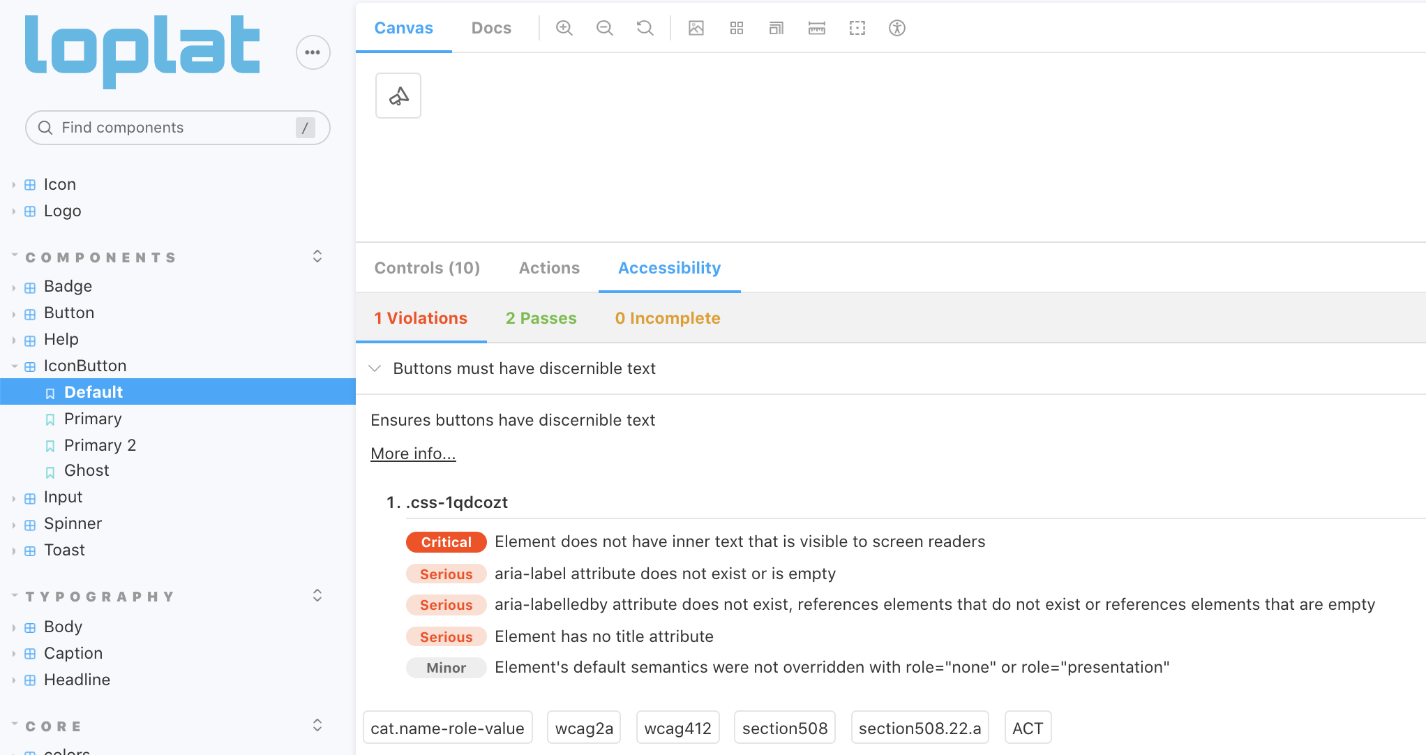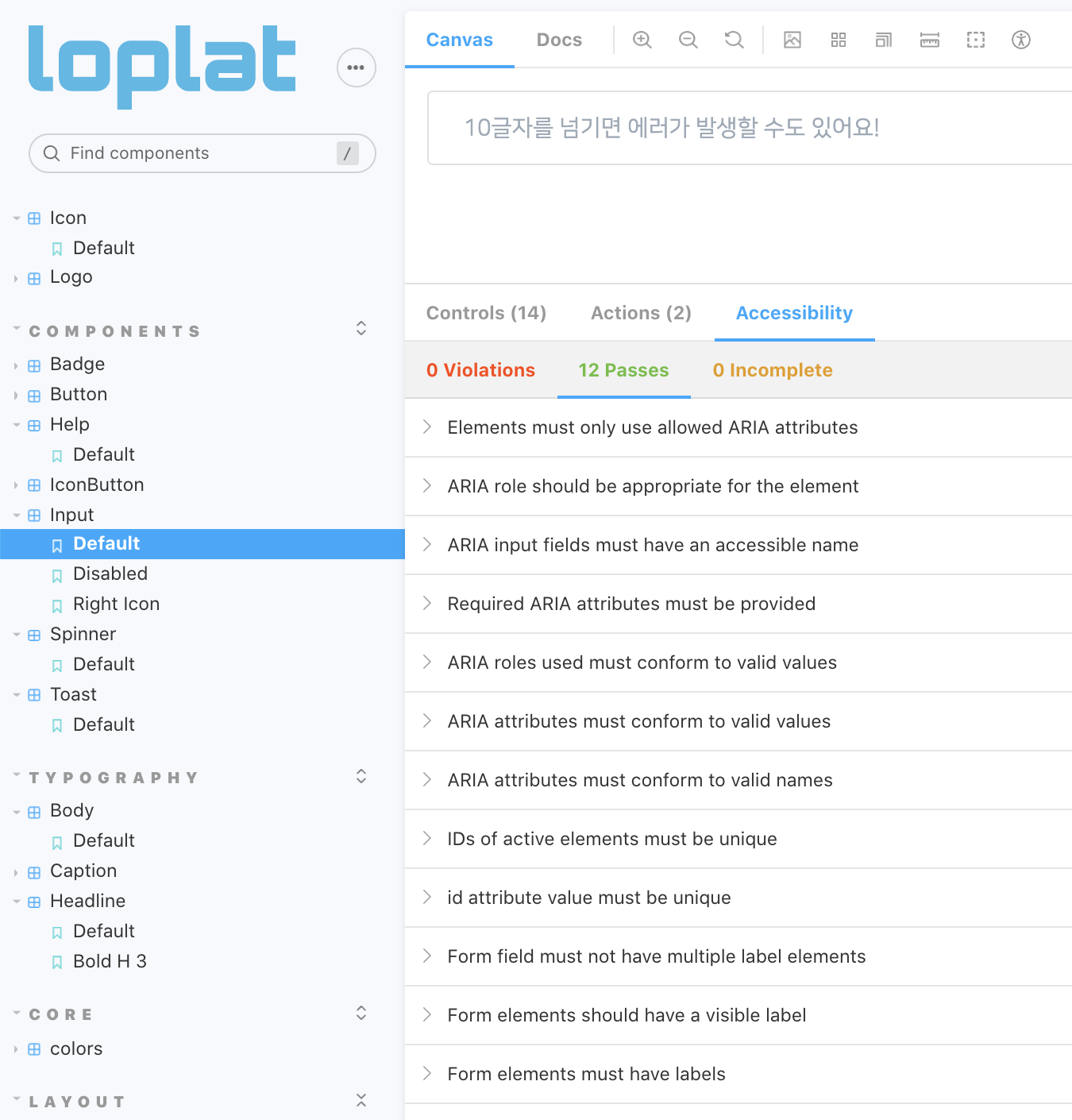 loplat UI의 모든 컴포넌트에 대해 violations를 없애기는 했지만 a11y addon은 최소한의 가이드 수준으로 보인다.(실제로 스크린 리더가 어색하게 동작할 수도 있음)