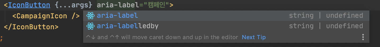 그 후, 기존 Button Prop에 AriaProps를 추가한다.