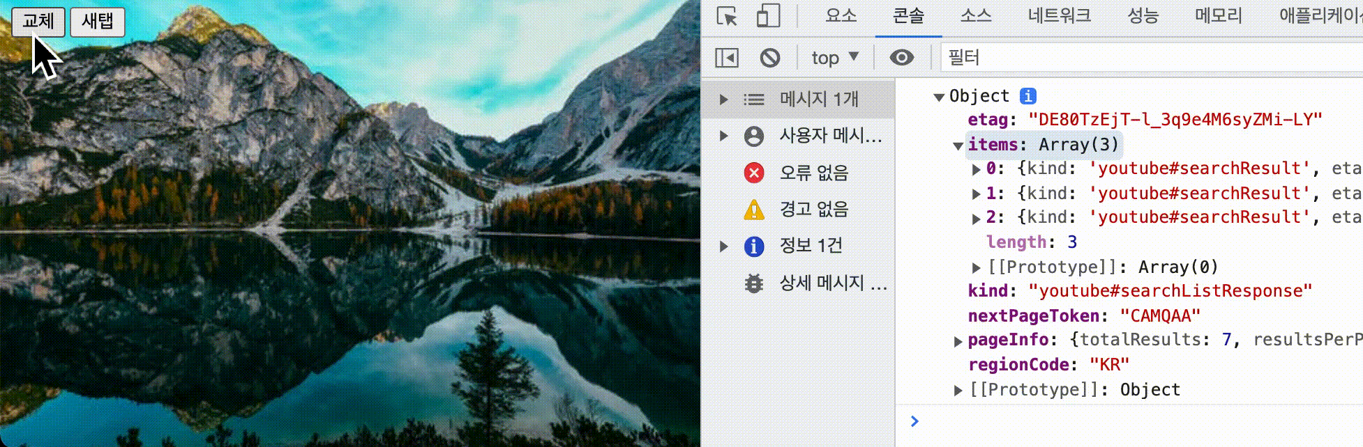 // buttons.js function changeBackgroundImage() { const images = ['1.jpeg', '2.jpeg']; document.body.style.backgroundImage = `url("/images/${images[Math.floor(Math.random() * images.length)]}")`; document.body.style.backgroundSize = 'cover'; } function openNewTab() { window.close(); chrome.tabs.create({ url: 'chrome-search://local-ntp/local-ntp.html' }) } document.addEventListener('DOMContentLoaded', function () { document.getElementById('change') .addEventListener('click', changeBackgroundImage); document.getElementById('newTab') .addEventListener('click', openNewTab); }); // index.html <head> <script defer src="buttons.js"></script> </head> - YouTube Data API를 사용하기 위해 Google Cloud Platform(gcp)의 '라이브러리' 탭에 들어가, Youtube Data API v3를 추가한다. 그리고 '사용자 인증 정보' 탭으로 이동하여 API key를 얻는다.