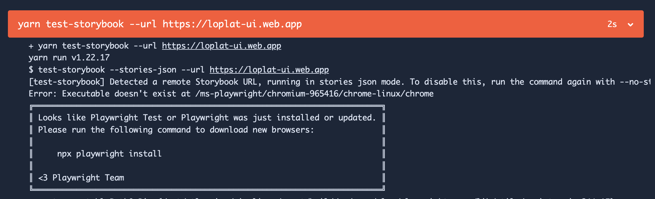 에러 문구대로 'npx playwright install', 'npx playwright install-deps' 와 같은 script를 추가해봤지만 효과가 없었다.