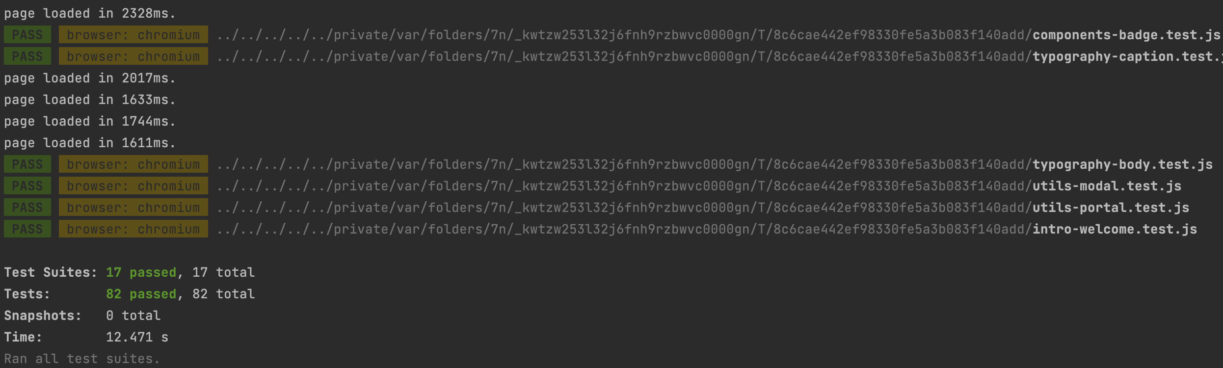 그럼 mdx story들도 모두 인덱싱 되기 때문에 test-storybook에서 인식하고 테스트를 진행시킨다.
