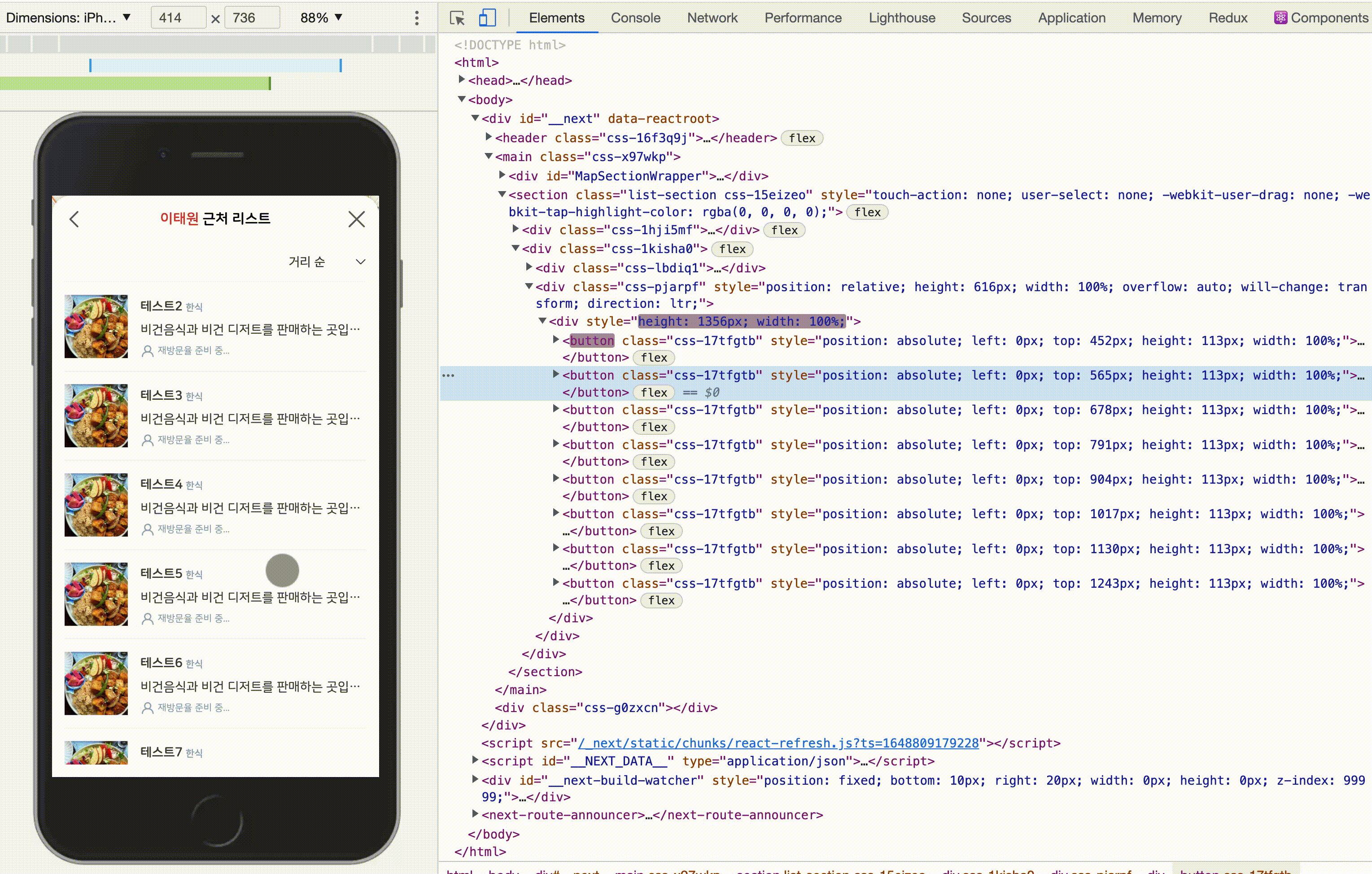 기존과 달리 이제는 사용자에게 보이는 영역 근처 8개의 button만 렌더링된다!