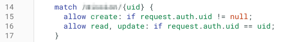 위의 사진은 특정 collection에 대해 로그인된 유저만 새로운 문서를 만들 수 있고, 본인이 만든 문서만 read, update 할 수 있도록 설정한 예시이다.