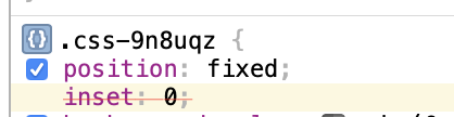 - 개발자 도구의 스타일 속성을 확인해본 결과, inset 이 적용되지 않고 있었다.